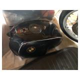 MOTORCYCLE AND ACCESSORIES: 1983 BMW r100 with accessories including tank, seat and saddlebags, Aero Roadcrafter padded riding suit with jacket and pants, Aero Stitch Riderwear boots, and riding gloves.