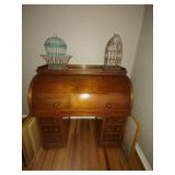 SOLID ROLL TOP DESK ANTIQUE ROLL UP SECTION IS SOLID WOOD NOT SLATTED VERY NICE WITH PULL OUT WRITING AREA.