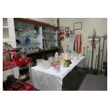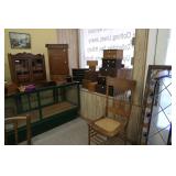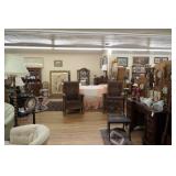· Antique American & European Furniture: · French Bedroom Suite w/ Bronze Mounts, Queen Size · China Cabinets, · Buffets · Ornate Brass & Iron Bed · Marble Top Wash Stands · McGuire Bamboo & Leather Glass Top Dining Table · Chairs, · Antique Oak Morris Chair w/ Figural Heads · Rocking Chairs · Sofas, · Settee’s, · Lamp Tables · Antique Oak Cabinets w Stained Glass · Antique Oak Fraternal Chair · Set of Carved French Chairs, · Antique Trunks, Mirrors, · Dress Form · Antique & Vintage Lighting, · Victorian Handing banquet Lamps, · Chandeliers · Glass Shades · Antique & Vintage Hanging Light Fixtures · Wall Sconces · Drawer Hardware · Door Knobs · Lamp Parts · Antique Oak General Store Floor Display Cabinets · Antique 10ft Long Upper & Lower Oak General Store Cabinet · 3 8 Foot Long Painted Black Wood Wall Show Cases · Aluminum & Glass 4 and 6 Foot Wall Show Cases · 6 Foot Long Aluminum Glass Floor Show Cases · Antique Oak General Store Meat Case w/ Marble Top & Mirror · Counter Top Display Cases · Vintage Timex Display Case · Antique & Vintage Toys, · Antique & Vintage Dolls & Clothes · Costume Jewelry · Bagged Jewelry · Textiles · Linens · Vintage Clothes, Hats, Purses, Furs · Hand Knotted Rugs · Wool Rugs Large & Small · Hand Painted China · Haviland Limoges Set of China · Spode, Wedgwood, Lenox, Franciscan & more · Crystal · Depression Glass · Art Pottery · Stoneware · Cookie Jars · Salt & Pepper Shakers · Figurines · Lladro · Fenton Glass · Carnival Glass · Pickle Casters · Pottery, Roseville, Weller, Hull, McCoy, Frankoma, & More · Toys, Metal Soliders, Cars, Metal Banks · Dolls & Doll Clothing · Pocket Knives · Fishing Poles, Reels & Lures · Decoys · Old Bottles · Perfume Bottles · Antique & Vintage Purses · Fraternal Medals, Ribbons, Banners, & More · Pipes, · Straight & Safety Razors · Antique Barber Chair - Needs Restoration · Military Uniforms & Accessories · Advertising · Star wars · Books · Magazines · Ephemera items, · Vintage Music Posters, · Peter Max Posters · Electronics, · Cameras, · Music, and Vinyl Record Album · 1920's Large Framed Burmess Tapestry · Toby Mugs · Antique Tools · Hand Tools · Vintage Oil Cans · Piano Rolls · Cylinder Rolls · Typewriters · Silver Plate Coffee Set & Serving Pieces · Silver Plate Flatware · & Much more coming Always show the full sale description by de