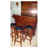 Older saddle, fishing poles, camping gear, electric train, 3 stereo, lots of lamps 2 Delft and ginger jar, small quimper lamp, 12 large plastic 55 gallon drums for storage water???, smaller ones too, 3 sofias, 1 love seat, severa small tables, several nice chairs, mirror screen, wood bar and back cabinet, 2 beds, several night stands, silver plate set Danish Princess, |
