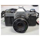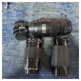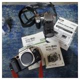 Cannon DS6041 with Cannon zoom lens ef28/80mm 1:3.5/5.6 III EOS digital Rebel with 3 booklets, Cannon 58mm zoom lens EF75-50mm 1:4/5.6 IS, Cannon EOS ELAM 2E body, Kiron 80-200mm F=4.5 macro:4 lens, Chinon 1:2.8 F=28mm lens, Miranda MC auto zoom 1:3.5/5.5 28-100mm lens, Vivitar automatic converter 2x-5 lens, Nikon EM with Nikon series E lens 50mm 1:1.8 with 3 books, Minolta X700 with a MD 50mm 1:1.7 lens and 4 booklets, Minolta 280 PX flash with case, Achieva flash with orig. box, assorted filters, and more (all as is directly from estate, not tested) {in house shipping available} 631