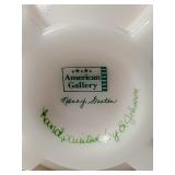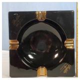 7" triangular and 10" rhomboid studio made Masonic, 9" square black Padilla Cigar Company and 10" oval green by Craftsman's Bench ceramic cigar ash trays, 9" Romeo Y Julieta portrait medallion pail from glass humidor with snap lock lid full of stick match boxes - see photos - in house shipping available 604
