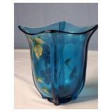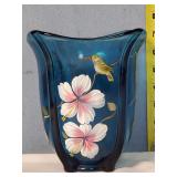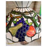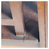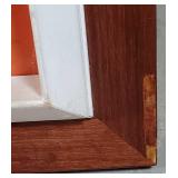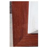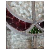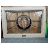 wood framed with blue flowers 21.5"x17" (2 cracked panels) & 16.25"x21.5" Arts & Crafts window (1small crack in red) {BUYER ARRANGES PACKING & SHIPPING OR LOCAL PICK UP} 633