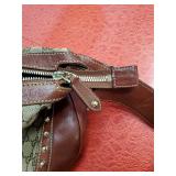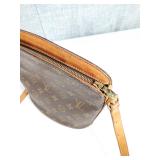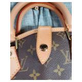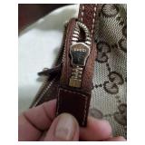 with dust bag - 8.5" tall (signs of age are pen mark on inside top, wear to the interior pocket lining, and stains on the strap) {in house shipping available} 3