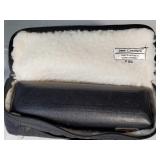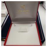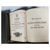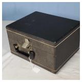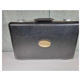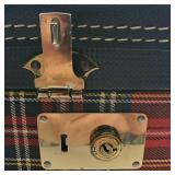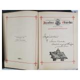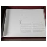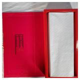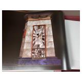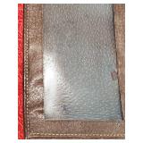 1- 12 page celluloid cover and stand with post card storage 12" X 9" X 3 1/2" 1- 14 page sculpted leather 6 1/8" X 4 3/4" X 1 1/4" both with good locks {local pick up or in house shipping available} 638