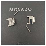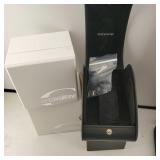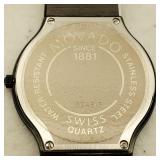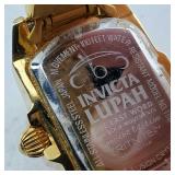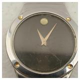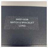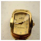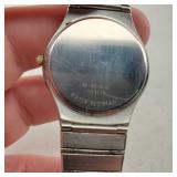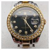working, stainless steel case and bracelet marked 18K 750 (Not Gold) CZ gold color bezel, black face date and day. {in house shipping available} 19