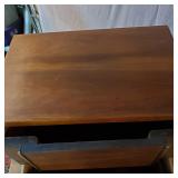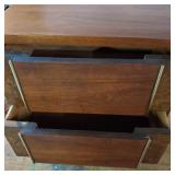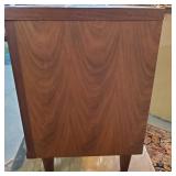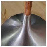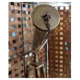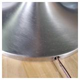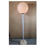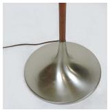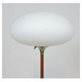 This is Laurel Lamps Company’s sought-after and iconic frosted mushroom shade on brushed chrome tulip base floor lamp, in a very unusual and elegant color combination. The base and top are Brushed Chrome , with a walnut veneered iron stem between, improbably supporting the frosted glass globe.. A 3-position switch allows different lighting levels. Retains Laurel Lamp Co. label. {local pick up or in house shipping available BASE AND SHADE WILL BE SHIPPED IN SEPARATE BOXES OR YOU THE BUYER WILL ARRANGE 3RD PARTY PACKING AND SHIPPING} 2