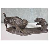 4 Hand Carved Water Buffalo with Rider Figures on Individual Stands
