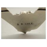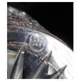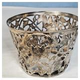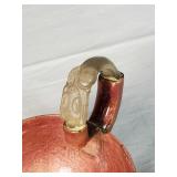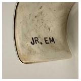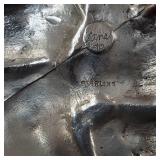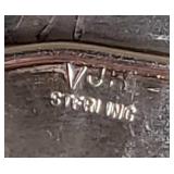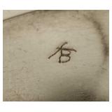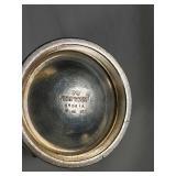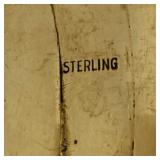 Circa 1930s -great condition, unique goose herder boy and geese sterling band and rim, stamped sterling below boy with full image for each of the three sides, superb Art Deco shape, great with Mid Century Modern design as well - minor silver loss to shoulder of boy on one side - in house shipping available 4