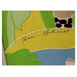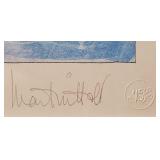 British-Israeli artist, Martin Holt, born in London and educated at University College, led an illustrious career as a Tel Aviv-based architect before moving to the fields of painting, caricature and cartoon. Based on the belief that humor can bind together the various social communities found in Israel, Holt's works uniquely portray various elements of Israeli society and have been exhibited throughout the world. "The Swimmer" 185/300 pencil signed with embossed stamp and "Hasidic Tennis' Special Edition 218/300, both pencil signed with embossed stamp {will ship in house but due to glass will be over size box} 615