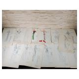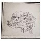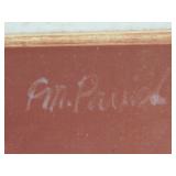 2 pcs- Warren (Frank) Wheelock (1880 - 1960) was active/lived in New York, New Mexico, Massachusetts. Warren Wheelock is known for Sculptor-abstraction, portrait. 1-Pencil on paper 33" X 18" unframed, signed Wheelock, 1- Framed Cubist colored pencil on paper sight 7 1/4" X 10", framed 13" X 17". 4 pcs un framed abstract art signed E R Wojciechowski and dated in the 70s, 1 - 1974 Rick Meheim? 8/20 imp 9 1/4" X 5 3/4" un framed. 1 - 16" X 12" colored pencil on paper illegible signature 1975, 1- un signed Picasso inspired print 506/666. {local pick up or in house shipping available} 621