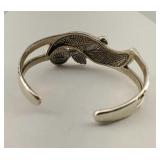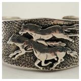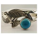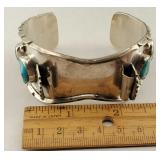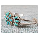 2 Signed Vintage Zuni Sterling Silver & Turquoise Cuff Bracelets