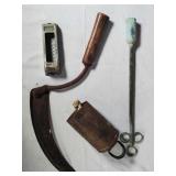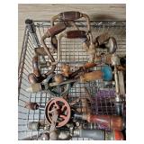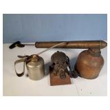 old torches and brazing irons, telephone line testers, Adlake battery lantern, sad iron, goggles, camp utensils, fire extinguishers, oilers, garden sprayers, National Sewing Motor, door bells, ice cream scoops and more {BUYER ARRANGES PACKING & SHIPPING OR LOCAL PICK UP} 630