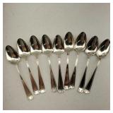 6-Dinner Knives, 6-Dinner Forks, 9-Teaspoons, 1-Butter/Cheese Knife, 1-Pickle Fork. 18.905 ozt without knives, monogram "B" on all but 5 spoons. {in house shipping available} 31