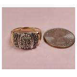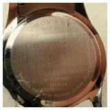 Working, Gold Tone Marked 18K 750 (Not Gold) stainless steel, silver face, gold tone, cz bezel, day & date. {in house shipping available} 17