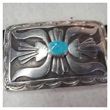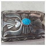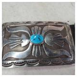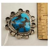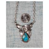 Natural High Grade Royston Turquoise Sterling Silver Naja Necklace Unsigned Vintage Pawn