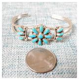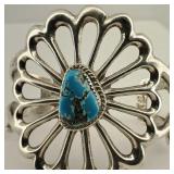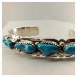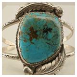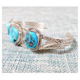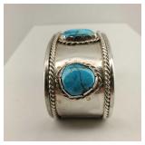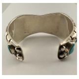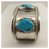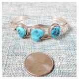 2 Vintage Navajo Sterling & Silver Turquoise Cuff Bracelets