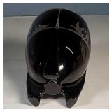 Art Deco Duncan and Miller Black Glass Rocket Vase with Geese Herder Boy Sterling Decoration
