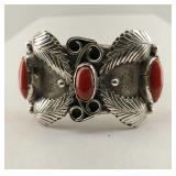 1" wide coral & 1.25" wide coral and turquoise - both are unmarked but guaranteed to be sterling {in house shipping available} 15