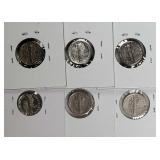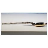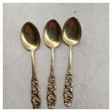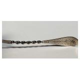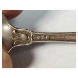 6 spoons of .835 silver with spear head finial delicate stylized flower etch, (light initial marks and 1899 date marks on back of finial), twist stem handle and pointed bowl (very light gold wash, one with minor dent) - in house shipping available 23