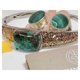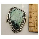 Sterling Silver & Brass Navajo Native American & 3 Stone Pixie Mine Turquoise Ring