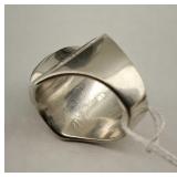 size 6 1/2, 5/16" wide band with cutting and blue enamel, signed Milor. 1.3 dwt total weight. {in house shipping available} 21