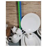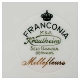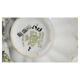 Shelley Thistle ribbed trio set, single ribbed white cup and The Foley China pre-Shelley WC mark ivy cup and saucer ( hairline in cup) Royal Albert Petit Point Chintz tea plate, 4 matching Taylor and Kent, 2 Royal Standard and Gainsborough violets teacups and saucers. Adderley Lawley cream and sugar, 20 pcs Krautheim Franconia Millefleurs Tea Ware (4 cups and 3 saucers, 2 dinner, 4 luncheon, 3 salad and 4 bread plates) and more - local pick up only 599