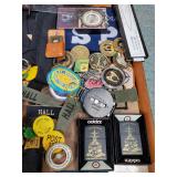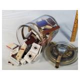 Cigar Ashtrays Including Masonic and Glass Pail Form Humidor full of Match Books