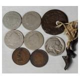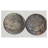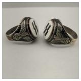 incl. 3/4" wide 3 nugget & 1" wide round disc - both unmarked but guaranteed to be sterling {in house shipping available} 12