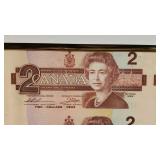 2 Framed Canadian $1 & $2 Full Sheet Uncut