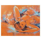 Hegina Rodrigues (Brazilian American, born circa 1960). Original abstract expressionism painting on canvas, large figural painting signed Rodrigues to lower right side - unframed 29.5"x40" {in house shipping available} 10