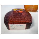 amber glass with button cushion bottom and lift top - in house shipping available 35