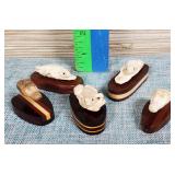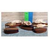 12 Antler Artisan Hand Carved Small Animals Mounted on Wood Bases