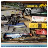 3 Flats Toy Trains, O Guage Intersections & Switches, 14 pcs of HO Guage Trains, & Transformers