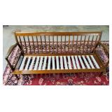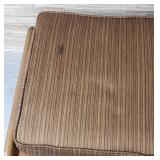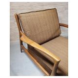 78" wide. retains all original Fagas straps and cushions (cushions stiff, but still intact( - stunning Danish modern sofa designed by architect and furniture designer Ib Kofod-Larsen for Selig in Denmark, circa 1960s. This iconic sofa features a solid walnut frame with sculptural armrests and slatted backrest. Its eye-catching sleek design is ideal for any type of decor. {BUYER ARRANGES PACKAGING AND SHIPPING OR LOCAL PICK UP} 11