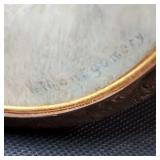 Good Condition see photos, darkened silver frame, signed Gemco, 6 1/2" tall X 5 1/2" wide, 12" handle, {in house shipping available} 20