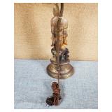 Vintage Spelter TV Lamp "Serenade" With Green Satin Glass Art Deco Globe