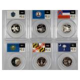 1957 black on blue and white on blue Antique special plus 6 other Florida plates (DMV with stars, 1 single orange, 2 with oranges and flowers, orange state behind green letters and Buccaneers) 2 California Sesquicentennial, Explore Oklahoma and South Carolina - in house shipping available 619