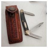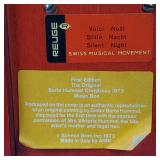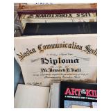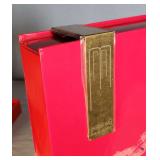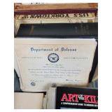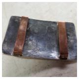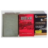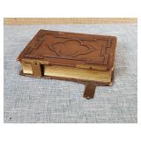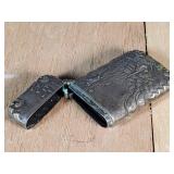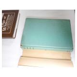 1- 12 page celluloid cover and stand with post card storage 12" X 9" X 3 1/2" 1- 14 page sculpted leather 6 1/8" X 4 3/4" X 1 1/4" both with good locks {local pick up or in house shipping available} 638