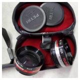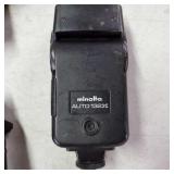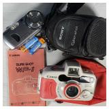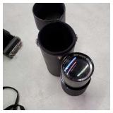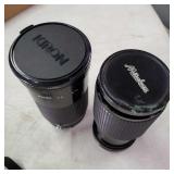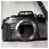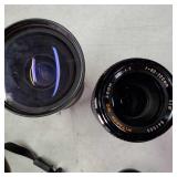 Cannon DS6041 with Cannon zoom lens ef28/80mm 1:3.5/5.6 III EOS digital Rebel with 3 booklets, Cannon 58mm zoom lens EF75-50mm 1:4/5.6 IS, Cannon EOS ELAM 2E body, Kiron 80-200mm F=4.5 macro:4 lens, Chinon 1:2.8 F=28mm lens, Miranda MC auto zoom 1:3.5/5.5 28-100mm lens, Vivitar automatic converter 2x-5 lens, Nikon EM with Nikon series E lens 50mm 1:1.8 with 3 books, Minolta X700 with a MD 50mm 1:1.7 lens and 4 booklets, Minolta 280 PX flash with case, Achieva flash with orig. box, assorted filters, and more (all as is directly from estate, not tested) {in house shipping available} 631