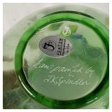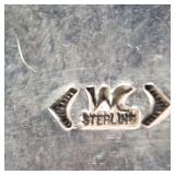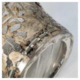Circa 1930s -great condition, unique goose herder boy and geese sterling band and rim, stamped sterling below boy with full image for each of the three sides, superb Art Deco shape, great with Mid Century Modern design as well - minor silver loss to shoulder of boy on one side - in house shipping available 4