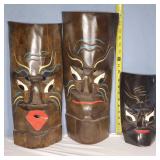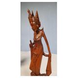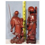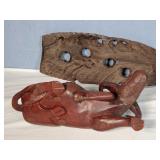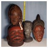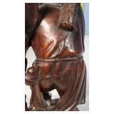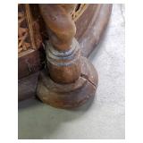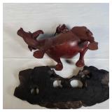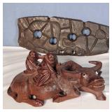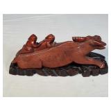 3 resting with 2 figures sitting atop and one walking with flute playing rider, all with fine hand carved stands - see photos for sizes and styles, one has repaired tail 605