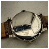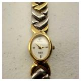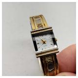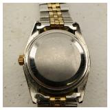 Working, Gold Tone Marked 18K 750 (Not Gold) stainless steel, silver face, gold tone, cz bezel, day & date. {in house shipping available} 17