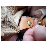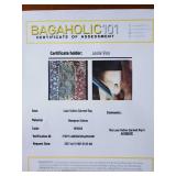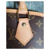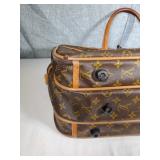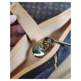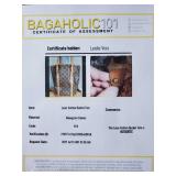 with dust bag - 8.5" tall (signs of age are pen mark on inside top, wear to the interior pocket lining, and stains on the strap) {in house shipping available} 3
