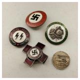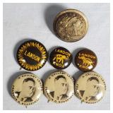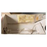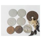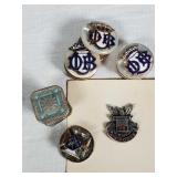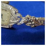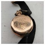 Including, 1-Gold filled Hampden pendant / wrist watch with cloth band, 1-Ladies Bulova 10k gold filled wrist watch with slide bead adjust mesh band, 3 pc. shell cameo screw back earrings and matching pendant / brooch, 12K gold filled, 1-miniature hand painted oval porcelain brooch 2 1/4" X 1 3/4" brass backing with steel pin, 2- gold filled lapel pins jr LSS red cross, and S.M.S 28, 1- art deco blue stone and chrome choker necklace, and one iridescent shell necklace. {in house shipping available} 22
