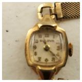 1-Elgin Ladies wrist watch with original display case, vintage band, winds not working, 1-Gruen Men's wrist watch rose gold plate, matching band, with original display case, working, needs band pins, 1- Bulova Art Deco,14k rose gold filled, with band, 17 jewel men's wrist watch, not working 1- Bulova Art Deco 10k yellow gold filled with band, 17 jewel men's wrist watch, not working 1- Bulova 10k gold plate, 15 jewel, with band, men's wrist watch, working 1- Bulova 10k rolled gold plate, with band, 17 jewel, 1-Bulova Art Deco 10k rolled yellow with band, as is wrist watch, 1- Hamilton 10k yellow gold filled 17 jewel, men's wrist watch, working, no band, Elgin 10k white gold filled , 15 jewel pocket watch, cracked crystal. 1- Elgin black face 15 jewel, parts only rust inside pocket watch. 1- Timex Automatic,as is. { in house shipping available} 29