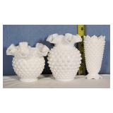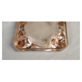 8" Fenton Rose Overlay melon rib vase, pink depression glass 3 1/4" Adam / Star and Flowers" ash tray (slight roughage to bottom edge), 8 octagon 7 1/2" diamond optic plates, 7" ringed band cookie jar, 3 footed ribbed bowl with spider web optic medalion and 2 urn form 9 1/4" vases, ruby flash pair of 13" paneled pedestal candy jars with diamond point accents, 5" King's Crown compote and pink flash ball rim ash tray - local pick up only or buyer arranges third party packing and shipping 601