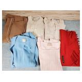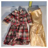 porcelain head with flirty eyes, teeth and painted eyebrows, back of head reads "Made in Germany Armand Marseille 390 D.R.G.M.246/1. jointed body (repaint, may have had chip near neck)antique slips, dresses and coat plus vintage plaid set - in house shipping available 608