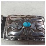 2 Vintage Navajo Sterling & Silver Turquoise Cuff Bracelets