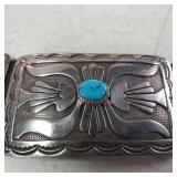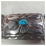 2 Signed Vintage Zuni Sterling Silver & Turquoise Cuff Bracelets